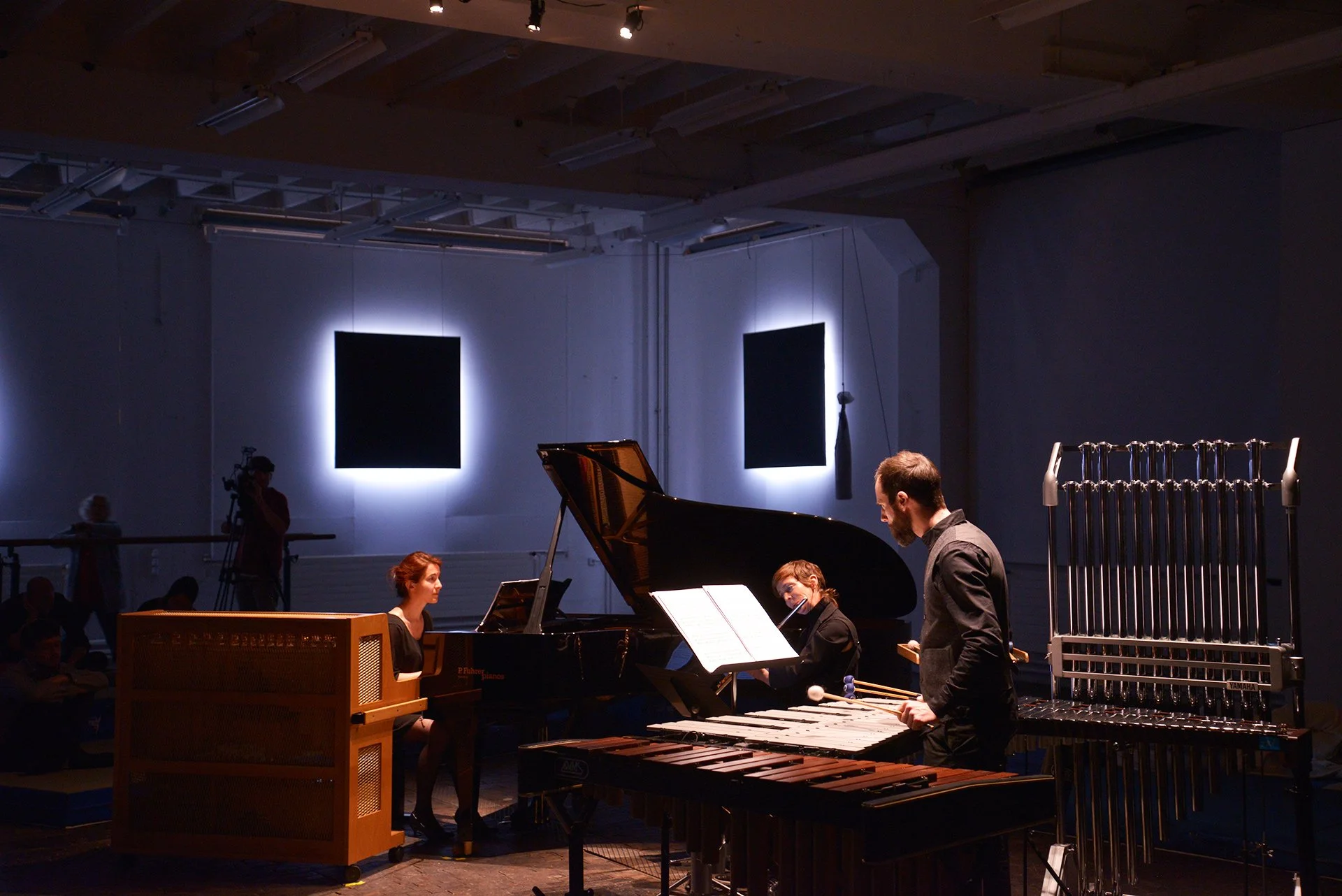 Following performances of Morton Feldman's five-hour masterpiece with Steven Schick and Sarah Rothenberg in a performance at Rothko Chapel in Houston, Texas, during the 2014-15 season, and a memorable sunrise concert of the work at the Ojai Music Festival in 2015, Claire joined the Italian pianist Anna D'Errico and the Swiss percussionist Alexandre Babel for a week of performances of the work at the C'Entre d'Art Contemporain Geneve in the Spring of 2018. Under the artistic direction of Ensemble Vide’s curator Denis Schuler, the trio performed the work inside of an installation of mattresses by the artist Sonia Kacem, with light design by Jonathan O’Hear.